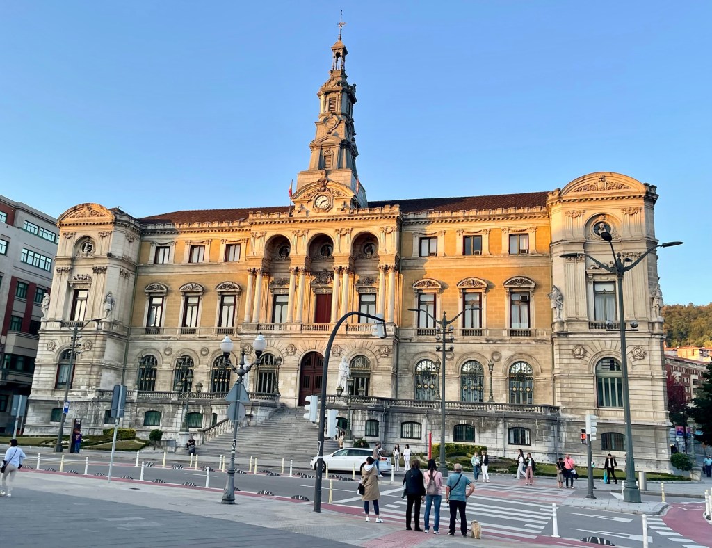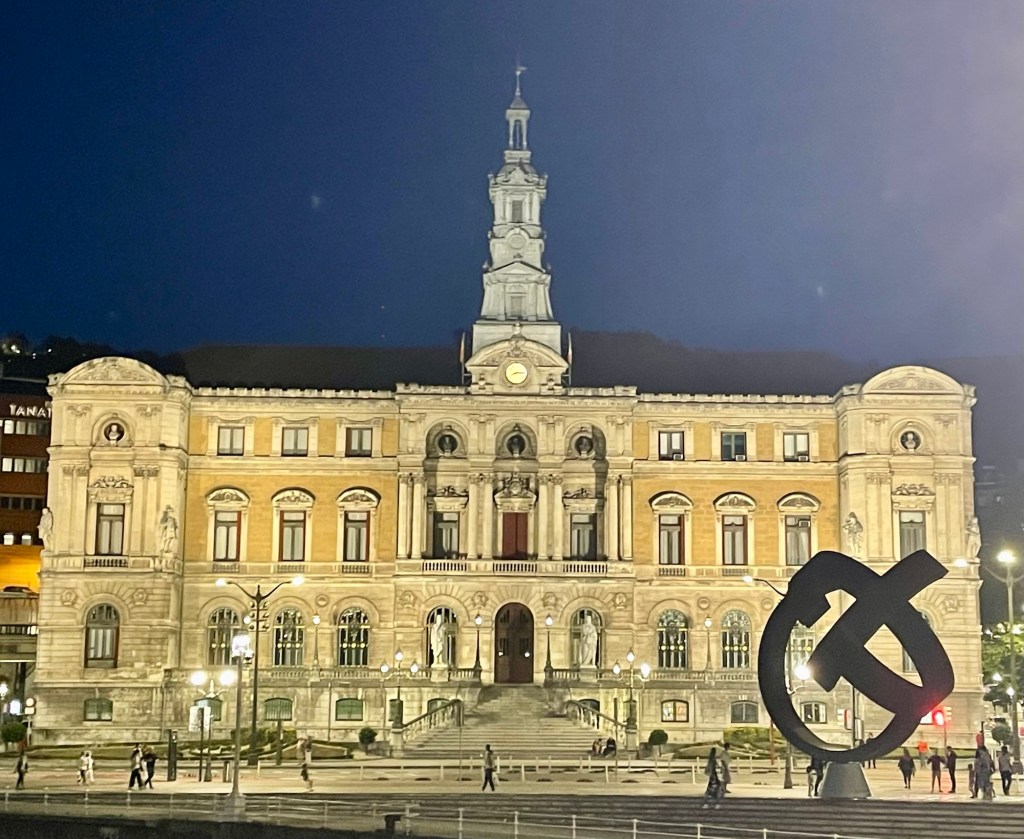 Upon arrival in Bilbao, we dropped the car off at the airport and found our way to our hotel. At 6 o’clock we met up with the group and walked into the old part of the city. The hotel is right on the river. We had dinner in a tapas bar.