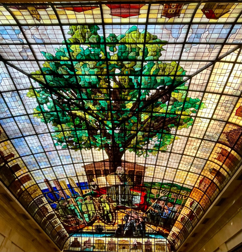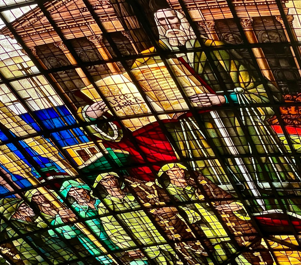 After visiting the Memorial Park, we went to the parliament building. Here are pictures from inside the building, which had a remarkable stain glass ceiling.