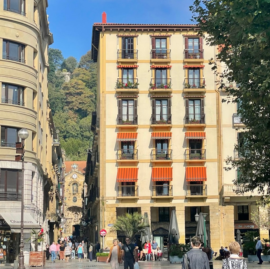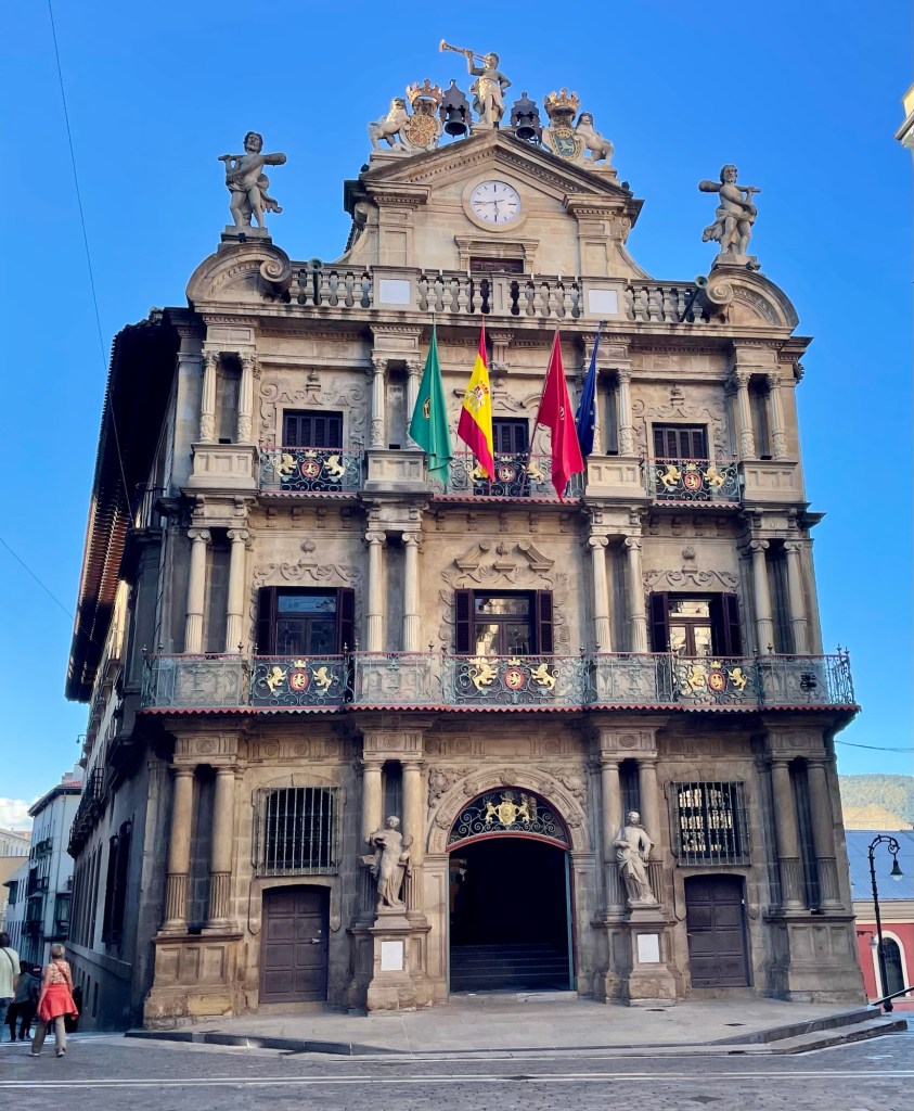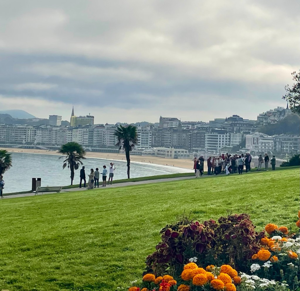 Today we left Bilbao for Pamplona with a stop in San Sebastian on the way. San Sebastian is a seaside town and is considered Spain’s gourmet capital (many Michelin star restaurants). It is also the gateway to the mountains of Basque country. We took a walking tour of the town before having lunch at a local restaurant. We were served an assortment of delicious small plates. One of the best meals I’ve had on the trip so far.