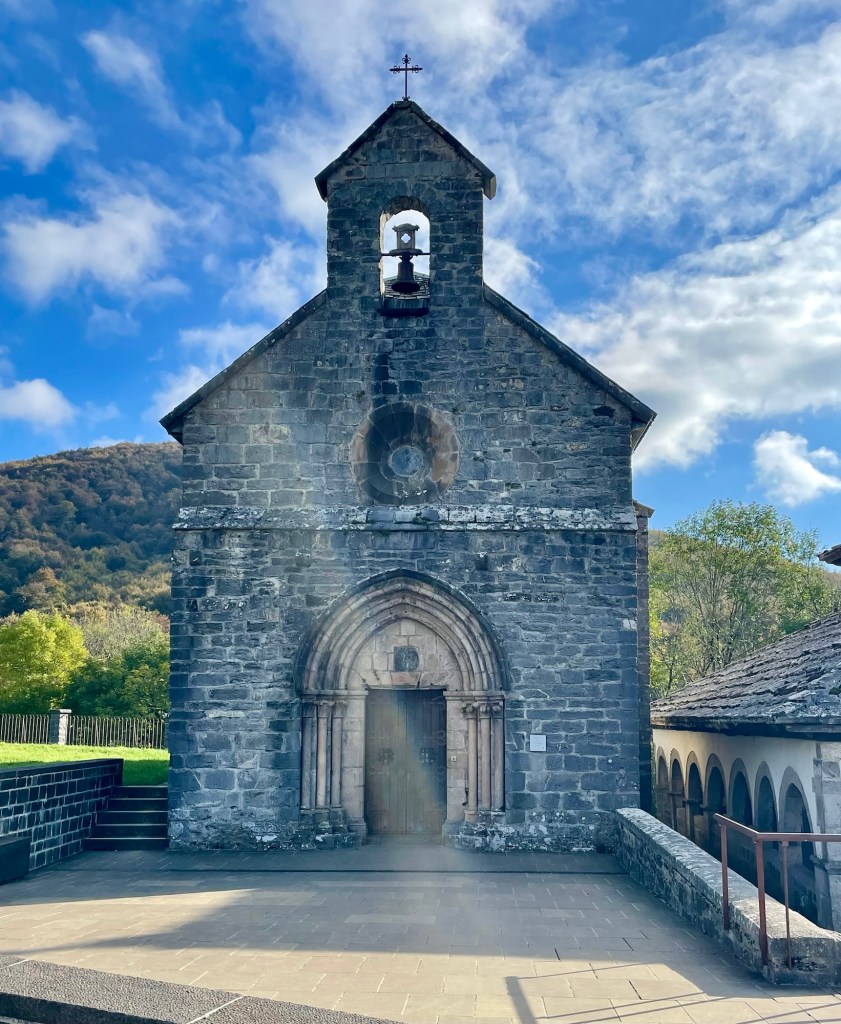 The history of the Camino de Santiago began in the 9th century. A hermit named Pelayo reported seeing mysterious lights in a forest, which led Bishop Teodomiro to find a mausoleum believed to be the tomb of Saint James. The first pilgrim was King Alfonso II of Asturias, who made a journey to the site in the 810s, establishing the first route known as the Camino Primitivo . By the 10th century, the number of pilgrims increased significantly, especially as it was declared one of the three great pilgrimages of Christendom by the Catholic Monarchs. The other two are Rome and Jerusalem. Its popularity grew through the Middle Ages, leading to the creation of various routes across Europe and the development of infrastructure to support pilgrims. After a decline due to wars and reformation, the Camino was revitalized in the late 20th century and has seen a massive increase in modern-day pilgrims. The number of pilgrims has seen a steady year-on-year increase, with hundreds of thousands walking the paths each year for a variety of spiritual, cultural, and personal reasons. The route can be done by walking or bicycling or on horseback. You can get a booklet that you can get stamps put in as you go along the route. On this tour, we will be walking along the Camino in different locations. We are following the path that is called the French Way. For our first trek, we started the journey in the village of Roncesvalles, which is a starting point for many pilgrims. I walked a total of 2 1/2 miles through a beautiful forest and then through a village.