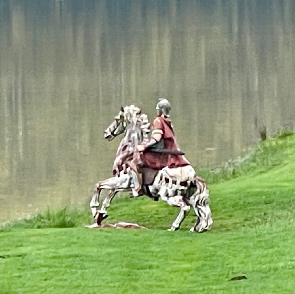 According to a legend, in Roman times, a Roman officer tried to get his troops to cross the river, but they refused because they were concerned that they would lose their memories. There’s some river in Rome that legend has it that you would lose your memory if you crossed it. The soldiers felt the same thing would happen here in Portugal. So the officer crossed the river and called out to each of his soldiers by name to prove to them that he did not lose his memory. The statue is here by the river to commemorate that legend.