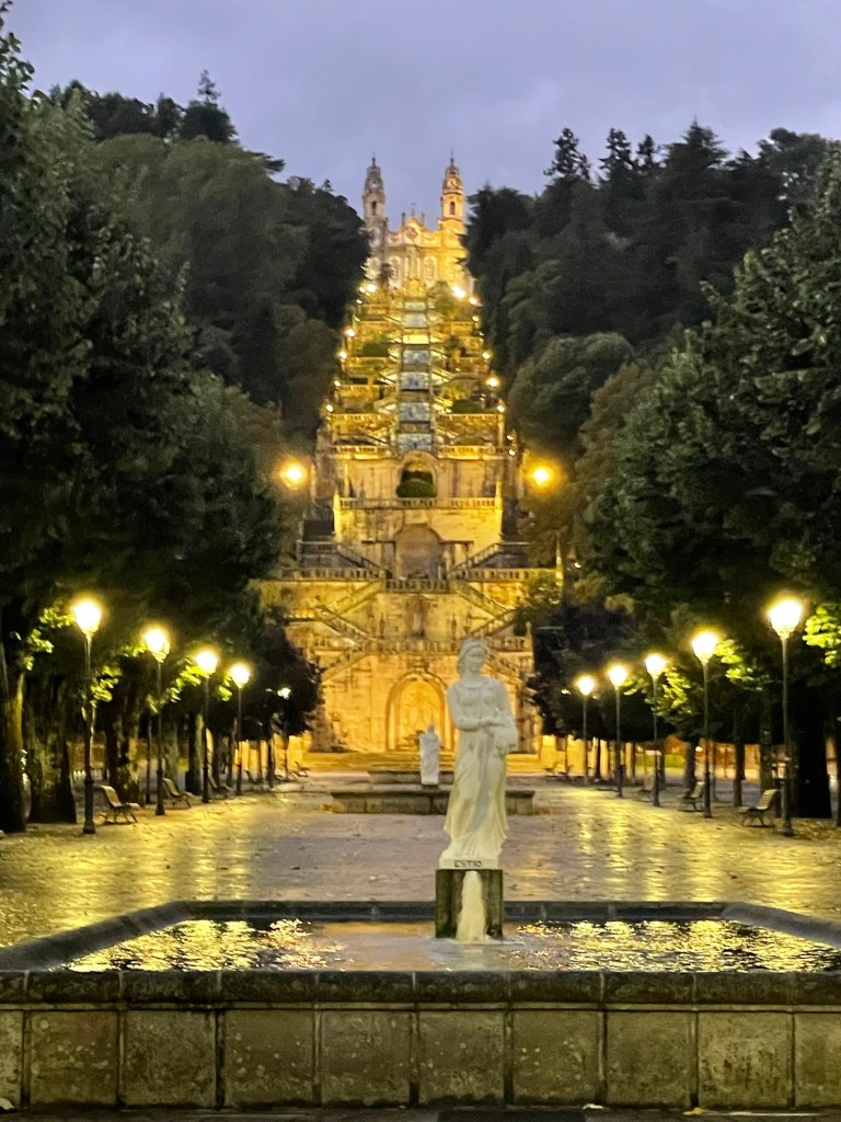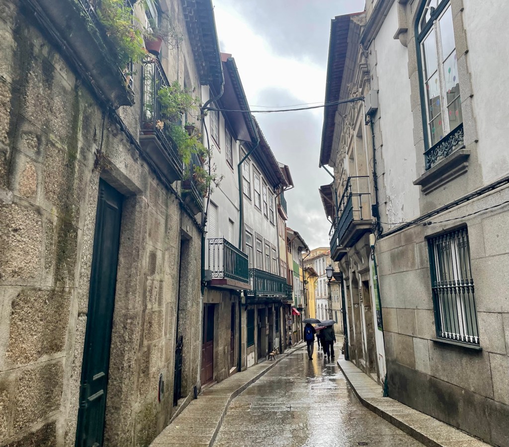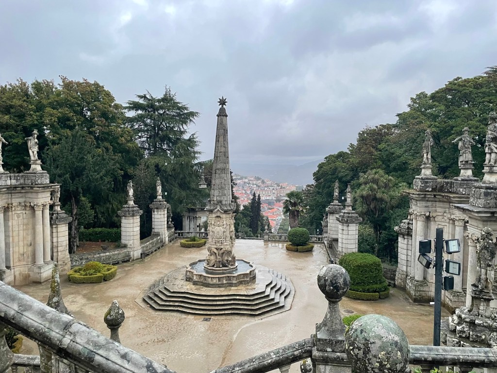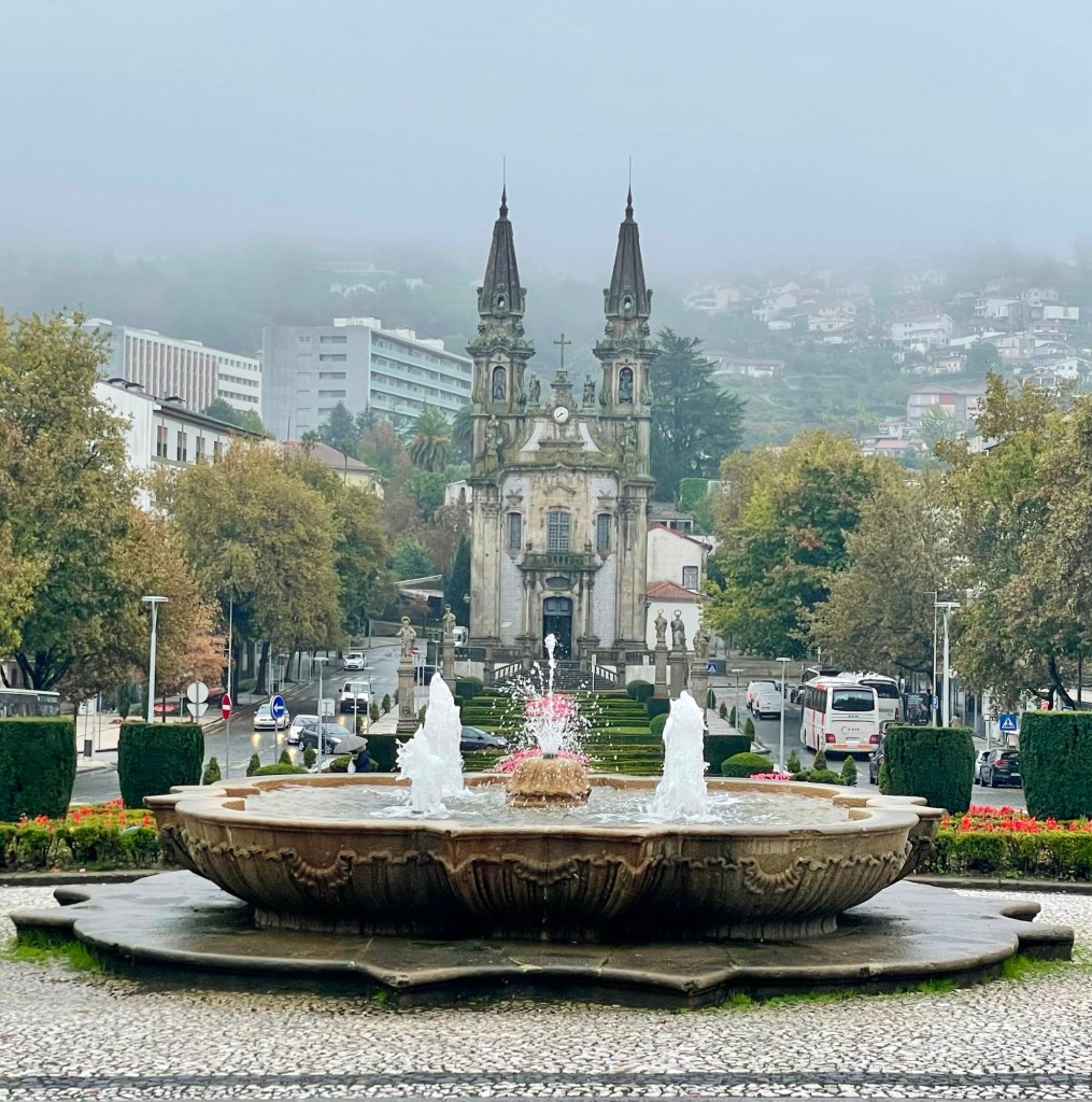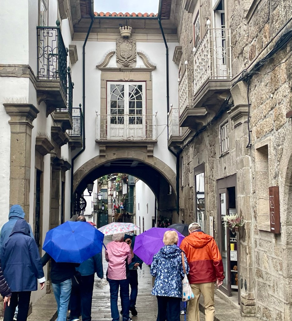 Our destination for the day is Lamego, Portugal, in the Douro Valley. Our first stop in route to Portugal was Ponte de Lima where we were supposed to walk part of the Portuguese El Camino. Unfortunately, it was raining so we shortened our walk. We did get to cross a very old bridge.