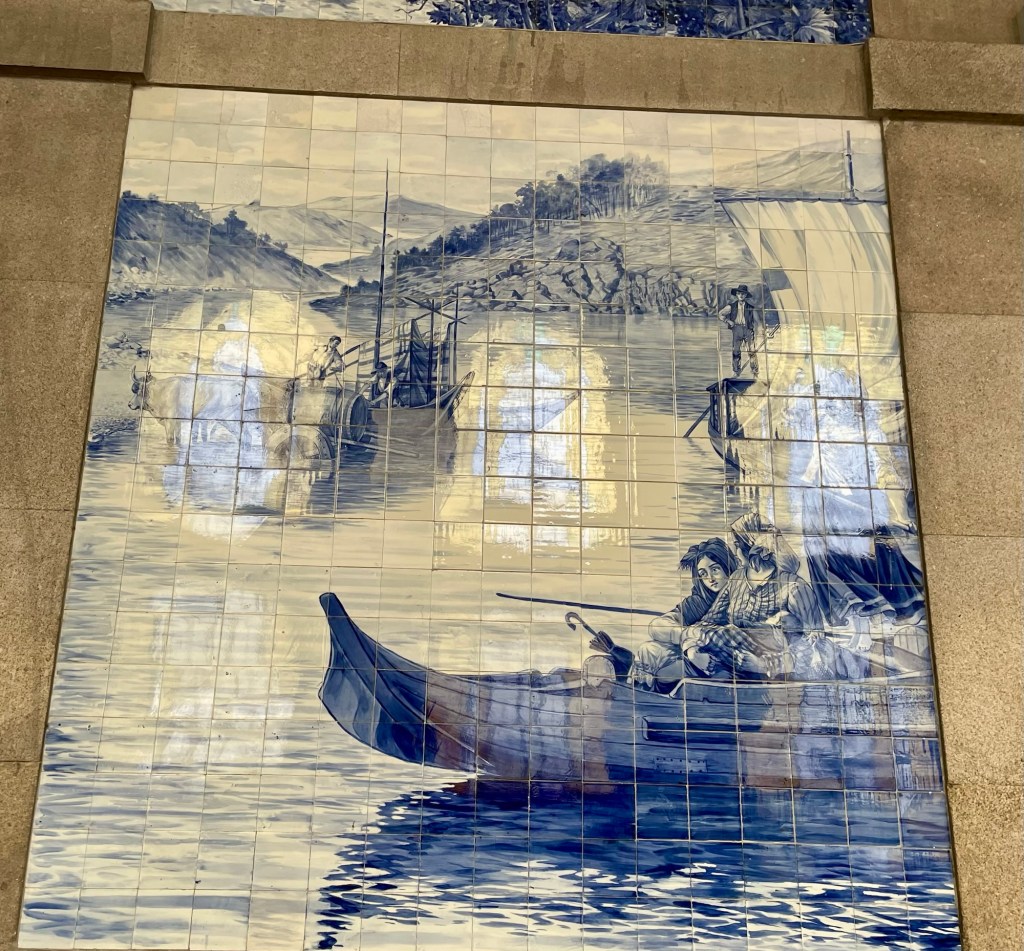 In the morning, we took a public bus to where the Douro River meets the Atlantic Ocean. Even though it was a public bus, it was a double-decker, so we had really nice views on the way to the ocean. I was able to grab the front row seat on the top deck. Once there, we had a nice walk along the water and stopped for coffee. Here are some pictures on our walk to the bus stop which took us through the train station. Inside the station, there was some beautiful tile mosaics.
