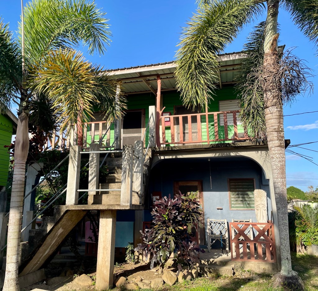 We are actually staying in a hotel with an elevator, hot and cold running water and two double sized beds. What luxury. The first thing Berni did was to take a hot shower. After relaxing a bit, we decided that the activity for the day would be visiting the Museum of Belize, which was a short walk from the hotel. We stopped at a place to eat, and we went to a local market to buy some food to have for breakfast.